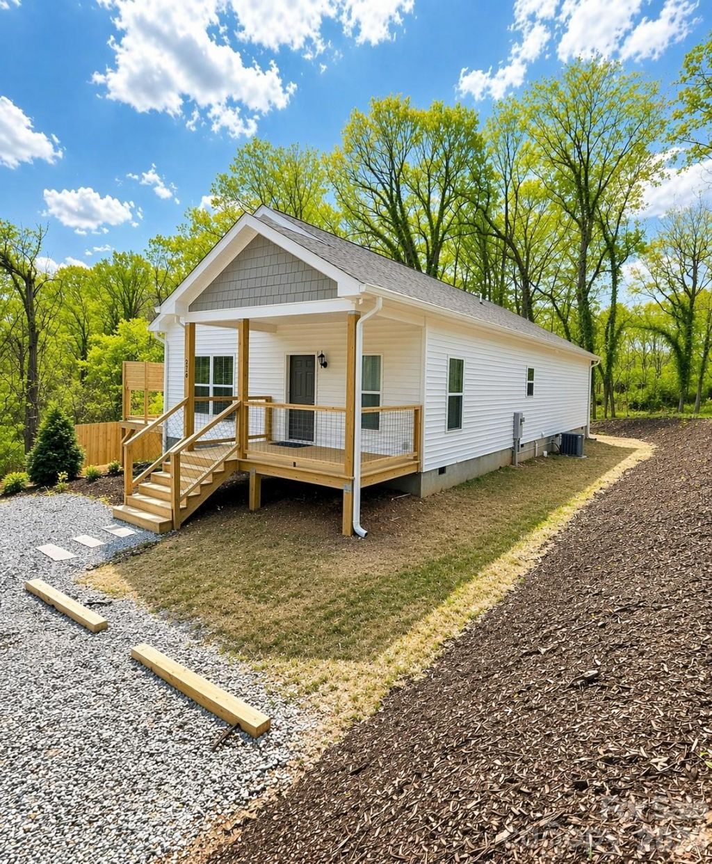 Tucked away on a private lot in the growing Candler area just minutes from Asheville, this single-level new construction home offers the perfect blend of comfort, style, and low-maintenance living. Designed with an open, airy layout and filled with natural light, the home feels calm, welcoming, and easy to live in. The kitchen features granite countertops, a farmhouse sink, and a seamless flow into the main living space?ideal for everyday living or gathering with friends and family. The spacious primary suite includes a large bedroom, generous closets, and a beautifully tiled walk-in shower. Enjoy the convenience of one-level living with durable, modern finishes and blinds throughout. Step outside to a private deck overlooking a peaceful wooded setting?perfect for relaxing after a long day. A rare opportunity to enjoy new construction, privacy, and convenience at an attainable price.